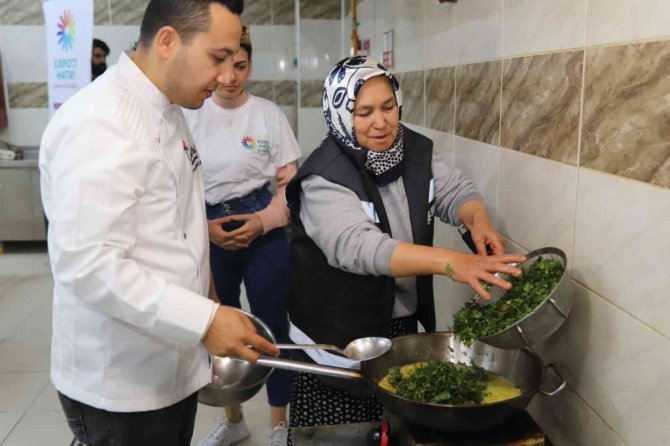Hatay'da Nisan 2021 tarihinde yapılacak olan EXPO 2021 etkinlikleri kapsamında Expo gönüllüleri çevredeki yenebilir doğal otları toplayıp yemek yaptı.