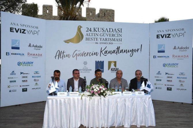 Kuşadası'nda 5 gün sürecek Altın Güvercin heyecanı Güvercinada'nın tarihi iç kalesinde düzenlenen bir basın toplantısı ile başladı. 12 Eylül'de gerçekleşecek büyük final gecesi ile sona erecek olan 24. Altın Güvercin Beste Yarışması için düzenlenen basın toplantısına Cumhuriyet Halk Partisi (CHP) Parti Meclisi Üyesi ve Aydın Milletvekili Bülent Tezcan, Aydın Büyükşehir Belediye Başkan Vekili Evrim Karakoz, Kuşadası Belediye Başkanı Ömer Günel, KUSAV Başkanı Levent Köylü, Altın Güvercin Koordinatörü Ali Rıza Türker ve yarışmanın altın sponsoru olan Eviz Yapı'dan Şakir Eviz katıldı.