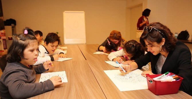The Marmara Otel’deki etkinliğe katılan Azeri asıllı Türk oyuncu Nesrin Cavadzade, downsendromlu çocukların eğitmenleri Aslıhan Aksun ve Elif Özcan ile gözetmen Dilek Soydan eşliğinde düzenlenen mandala etkinliğinde renkli tasarımlar yaptı. Çocuklarla yakından ilgilenen genç oyuncu zaman zaman duygulandı.