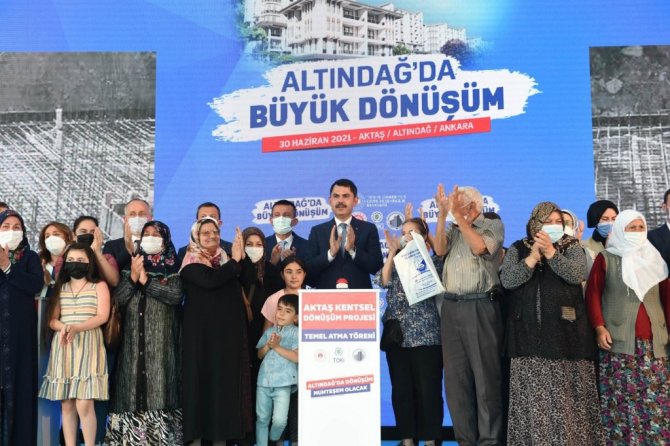 Çevre ve Şehircilik Bakanı Murat Kurum, Aktaş Kentsel Dönüşüm Projesi kapsamında yapılacak 357 konut ve 42 dükkanın 1 yıl içinde hak sahiplerine teslim edileceğini söyledi. Bakan Kurum, Selçuklu'dan Osmanlı'ya ve Cumhuriyet'e kadar yüzyıllar boyunca "tarihi Ankara" olarak bilinen özel bir yer olan Altındağ'da vatandaşlara verilen sözü yerine getirdiklerini belirtti. "Altındağ'ın büyük dönüşümü" ismiyle başlattıkları projede atılacak temelle tarihi Ankara'yı aslına uygun hale getirmek için çalıştıklarını dile getiren Kurum, gece gündüz Ankara için ne yapılabilir gayreti içinde olduklarını vurguladı. Bakan Kurum, "Aktaş Kentsel Dönüşüm Projemizle 357 yeni yuvamızın ve bereketin merkezi olacak 42 dükkanımızın temellerini atıyoruz. Yeni yuvalarınız hayırlı olsun" ifadelerini kullandı.