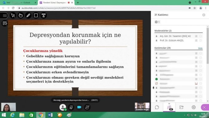 Altındağ Belediyesi çevrimiçi seminer maratonuna devam ediyor. Altındağlı kadınlar "Pandemi sürecinde depresyondan nasıl korunabiliriz?" konulu seminere katıldı. Ankara Üniversitesi Hemşirelik Fakültesi'nden Prof. Dr. Gülsüm Ançel ve Dr. Yasemin Çekiç tarafından verilen eğitim seminerinde, pandemi sürecinde hayatımızda nelerin değiştiği, bu süreçte yaşadığımız sorunlar, yaşadığımız sıkıntıların depresyon olup olmadığının ayrımını yapabilmek için depresyonun belirtilerini tanımlama gibi konular ele alındı.