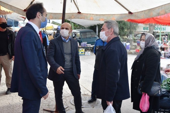 Altınova Kaymakamı Regaip Ahmet Özyiğit ve Altınova Belediye Başkanı Dr. Metin Oral, semt pazarını gezerek denetimler yapıp, vatandaşları sosyal mesafe ve alınması gereken önlemler konusunda uyarılarda bulundular.