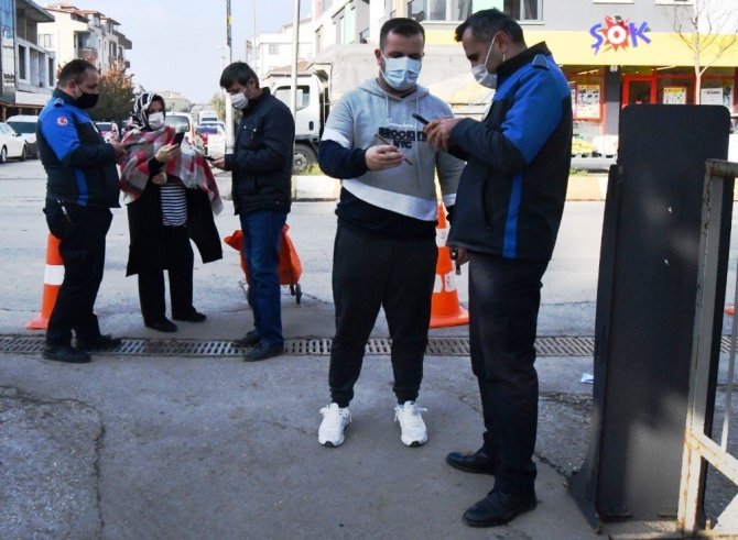 Yalova Altınova Semt Pazarında; vatandaşlar, HES Kodu sorgulaması ve ateş ölçümü yapıldıktan sonra pazar alanına alınırken maske kontrolü, ateş ölçümü...