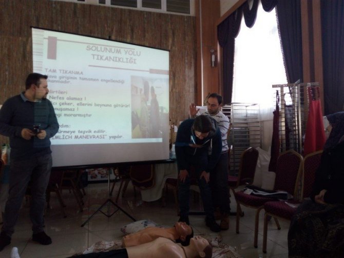 Halk Eğitim Merkezi Müdürü Halil Akbulut, herhangi bir olay karşısında yapılan ilk yardımın sağlık açısından çok önemli olduğunu belirterek, ’’Kazalarda olay yerine sağlık ekibi veya ilk yardım eğitimi almış ekipler gelinceye kadar kimsenin müdahalede bulunulmaması gerekiyor. Meydana gelebilecek olay ya da kaza sonrasında yapılacak olan kurtarma operasyonunda uygulanan ilk yardımın, bilinçli olarak, eğitim almış kişiler tarafından yapılması kazazedelerin hayatlarını kurtarabilecek. Sakat kalmalarının da önleyecektir’’ dedi.