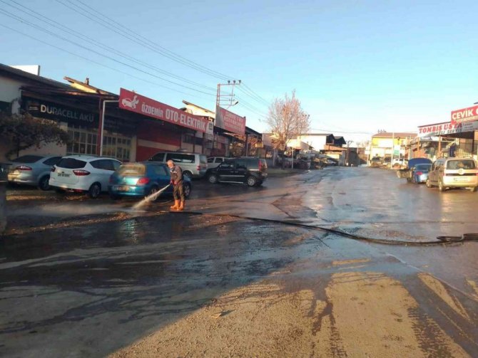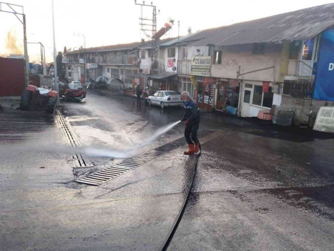 Belediyeden yapılan açıklamada, "Sanayi bölgesinde yapılan çalışmalardan dolayı meydana gelen çöplerin temizliğinin ardından yıkama çalışmaları da tamamlandı" denildi.