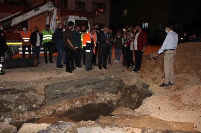 55 Evler Mahallesi'nde ekiplerin çalışma sürdürdüğü alandaki incelemesi sonrası açıklamada bulunan Başkan Sarı, "Birkaç ay önce Kirazlıdere'de ana depomuzun bulunduğu alanda çalışma başlattık. 4 kilometrelik bir yol. Her gün su patlıyor. Eştiğimizde hemen ana borunun yan tarafında yeni bir boru döşendiğini gördük" diye konuştu.