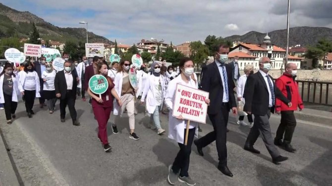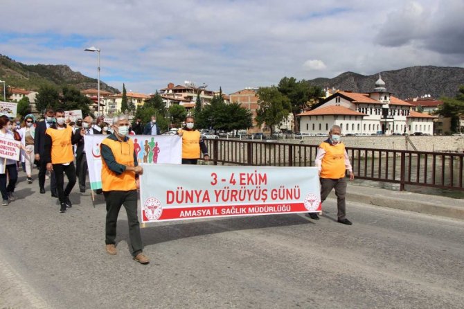 Aşılama haritasında mavi kategoride bulunan Amasya'da sağlık çalışanları "3-4 Ekim Dünya Yürüyüş Günü" dolayısıyla yürüyüş yaptı.