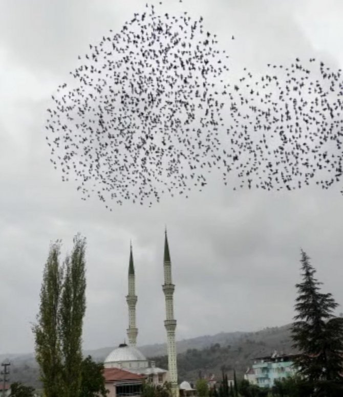 Sürüler halindeki sığırcık kuşları, Amasya semalarında görsel bir şölene imza attı. Taşova ilçesinde ortaya çıkan kalabalık sürü büyük bir ahenk içinde, bir o yana bir bu yana uçuştu. Onlarca kuşun yer aldığı grupların karşılaşmaları sırasında ise birbirlerine çarpmadan yön değiştirmeleri dikkat çekti.