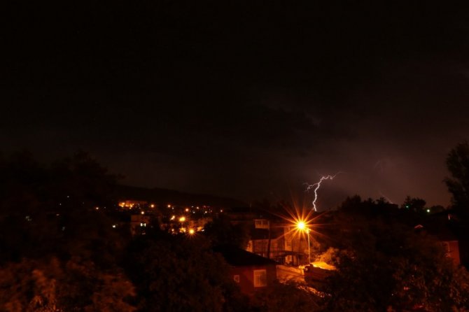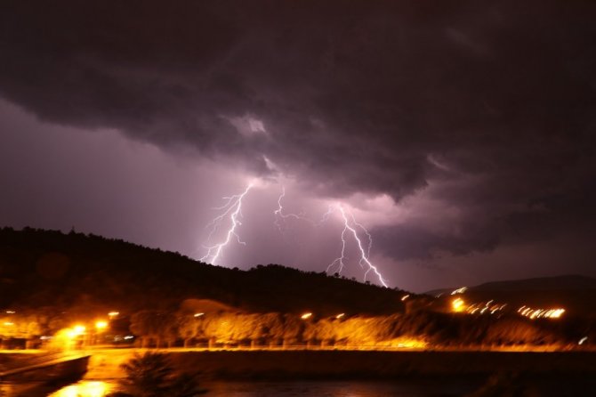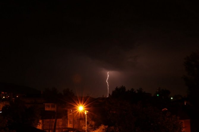 Amasya’da şimşekler gökyüzünü aydınlattı