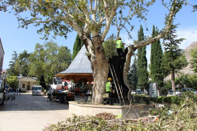 Amasya'da bahçesinde bulunduğu 535 yıllık Sultan II. Bayezid Camii ile aynı yaşta olan ikiz çınarlara bakım ve restorasyon yapıldı.