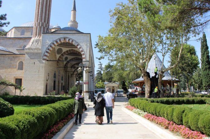 Bu kapsamda 535 yıllık Sultan II. Bayezid Camii ile aynı yaşta olan ikiz çınarlara bakım yapıldı. Avluda yıldırım düşmesine karşı paratoner görevi yapan ağaçların gövdelerinin içindeki çürümüş dokular temizlenip kurumuş dallar alındı. Gerekli ilaçlama ve çam katranı uygulamaları yapıldı. Böcek ve mantar istilalarına karşı ağaçların direnci artırıldı.