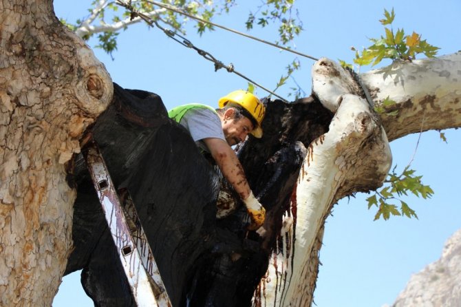 Amasya’daki 535 yıllık ikiz çınarlara bakım ve restorasyon yapıldı