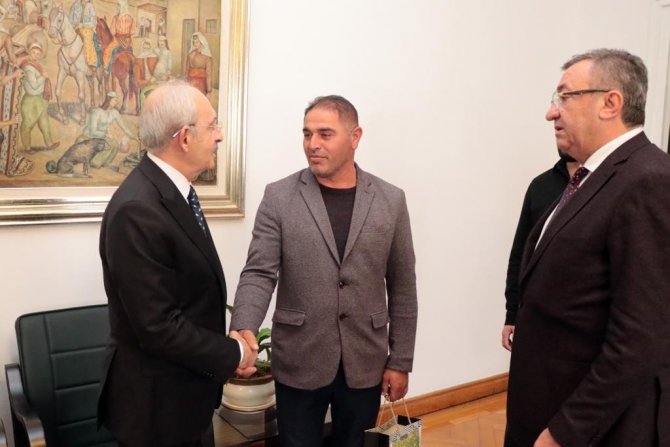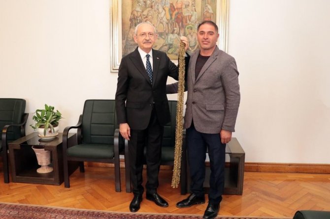 Amasya'nın Taşova ilçesine bağlı Çaydibi köyü Muhtarı Erkan Yılmaz, köyde yetişen ve çiftçinin geçim kaynağı olarak kullanılan, altınla eş değer olan "çiçek bamyası"nı CHP Genel Başkanı Kemal Kılıçdaroğlu'nu ziyaret ederek hediye etti.