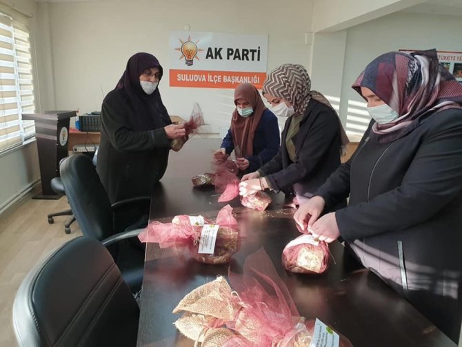 Amasya'nın Suluova ilçesi AK Parti İlçe Başkanlığı'nda görevli kadınlar karantinada olan vatandaşlar için kendi hazırladıkları şifa paketlerini dağıttılar. AK Parti Kadın Kolları'nda görevli bayanların kapı kapı dolaşarak karantinadaki evlere şifa paketlerini dağıtarak ve Cumhurbaşkanı Recep Tayyip Erdoğan'ın selamlarını ilettiklerini söylen İlçe Başkanı Mustafa Temel, "Hanım kardeşlerimiz AK Parti İl Kadın Kolları Başkanı Mesudiye Altun Gürlevik ve İlçe Kadın Kolları Başkanımız Ayşegül Yılmaz ile birlikte şifa paketlerini vatandaşlarımıza ilettiler. Karantina sürecinde evlerinde dinlenen vatandaşlarımıza hazırladığımız şifa paketlerimiz ile destek olmak istedik. Rabb'im tüm hastalarımıza şifa versin. Bu zor günleri birlikte aşacağız" dedi.