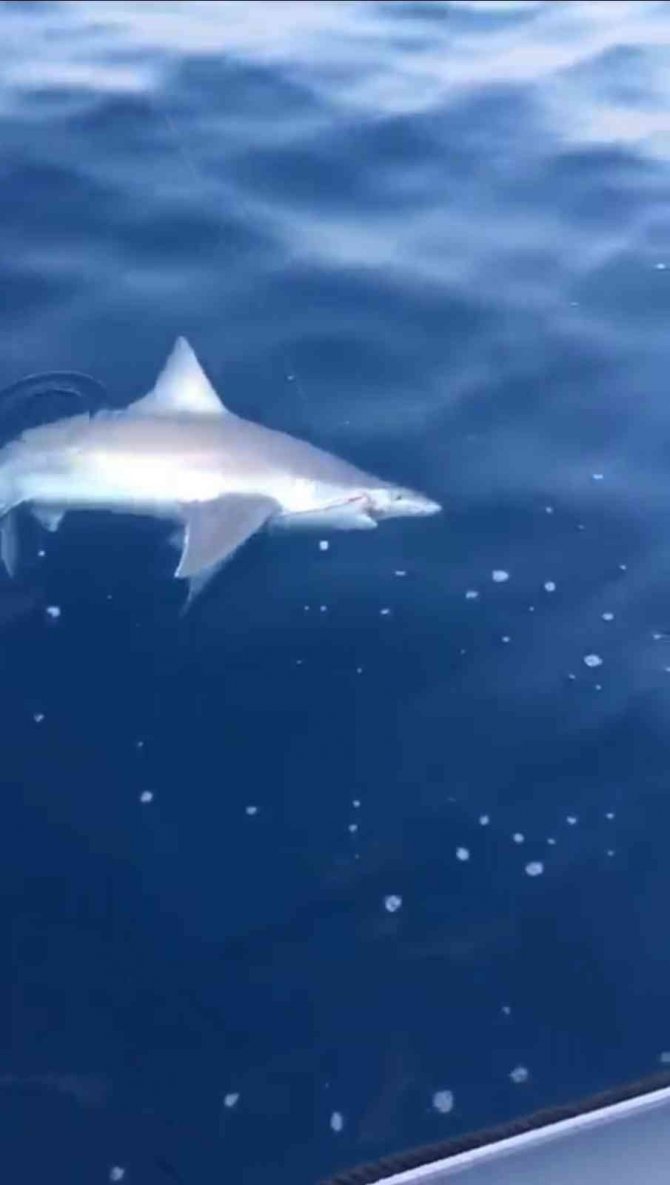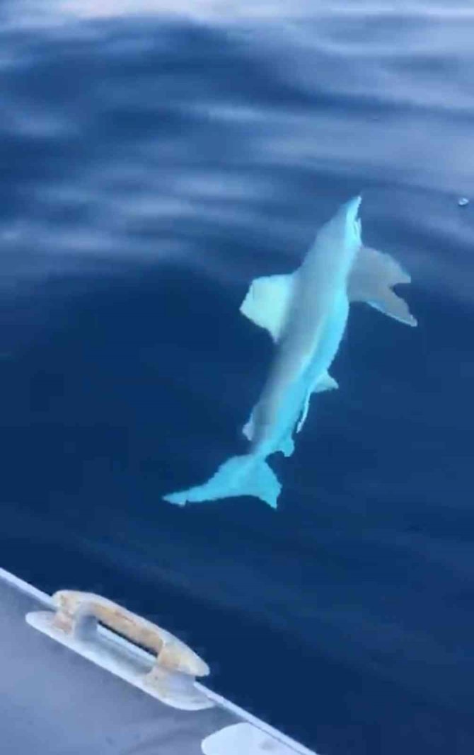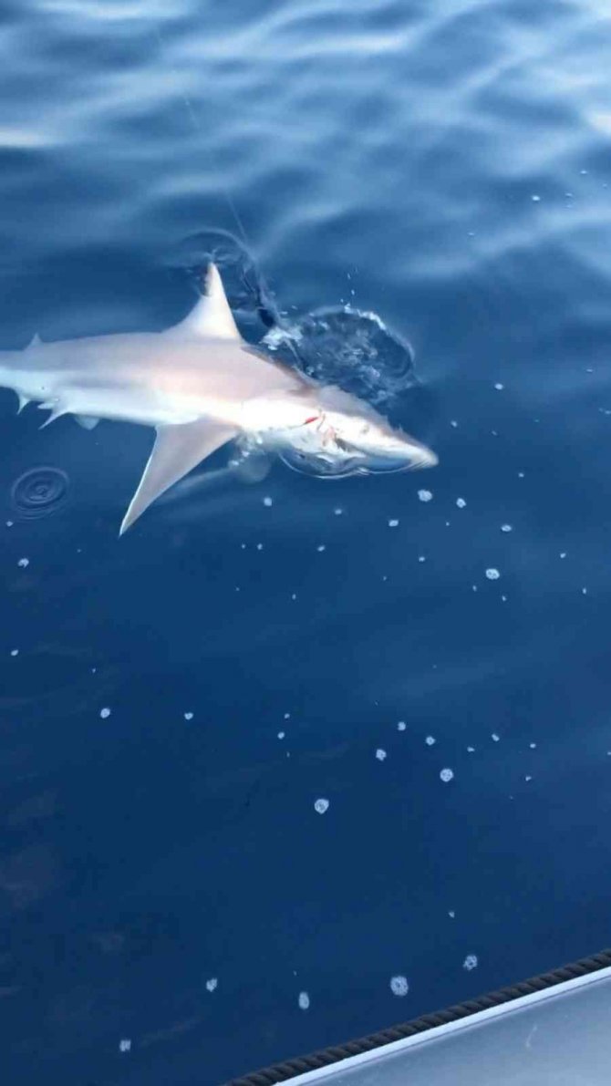 Teknesiyle balık avına çıkan amatör balıkçı, 1.5 buçuk metre boyunda gri camgöz köpek balığı yakaladı. Samandağ sahili açıklarında oltasına takılan köpek balığını görünce şaşırdı. Amatör balıkçı, daha sonra köpek balığını oltadan kurtararak denize bıraktı.