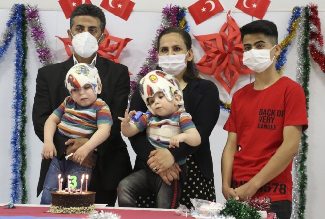 Ameliyatla ayrılan siyam ikizlerine doğum günü sürprizi