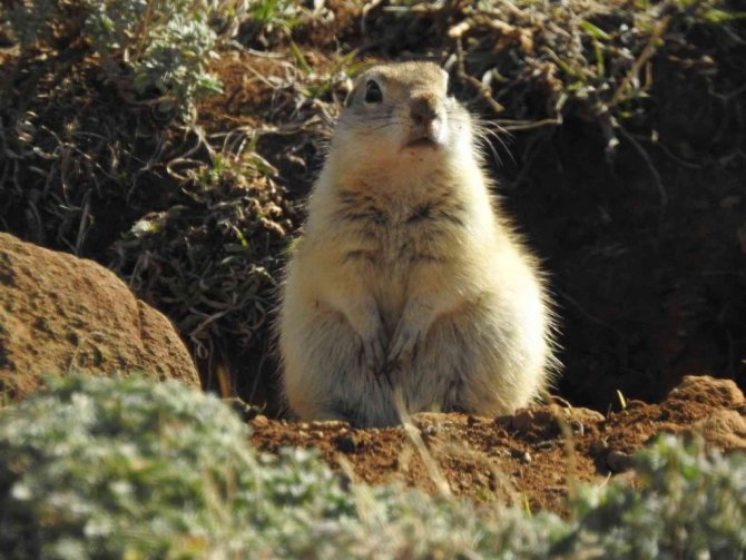 Erzincan'da Munzur Dağları eteklerinde yuva yapan Anadolu gelengisinin (yer sincabı) poğaça yerken sevimli halleri İhlas Haber Ajansı (İHA) kamerasına yansıdı.