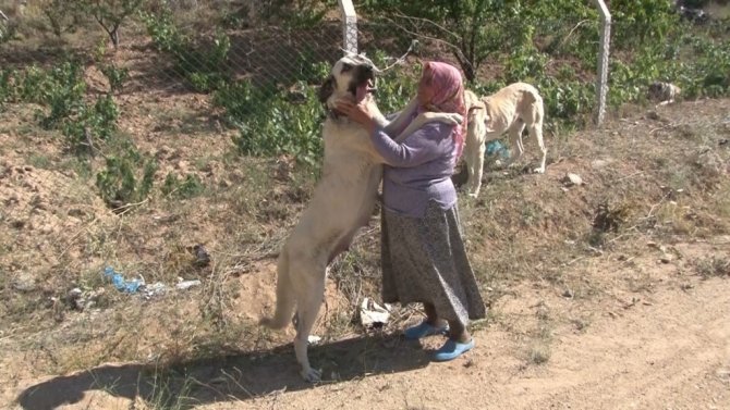 Emine teyzenin boyundan büyük köpeklere sevgisi şaşırtıyor