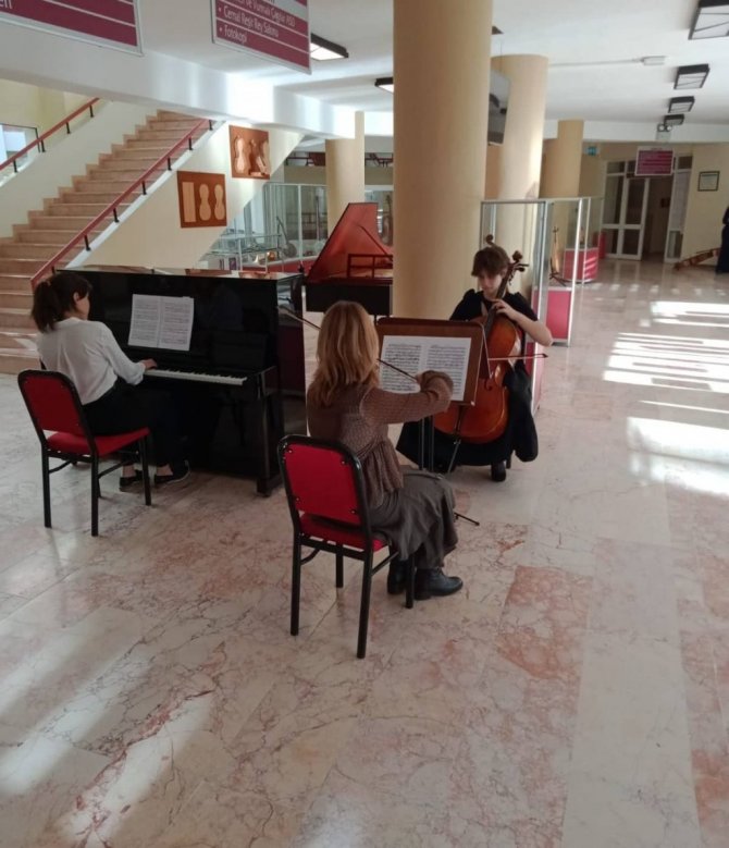 Anadolu Üniversitesi Devlet Konservatuvarı öğrenci ve öğretim elemanlarının katılımıyla altıncısı gerçekleşen dinletide; Yaylı Çalgılar Anasanat Dalı'nda konuk öğretim elemanı olarak dersler veren Ankara Üniversitesi Devlet Konservatuvarı öğretim üyesi, viyolonsel sanatçısı Doç. Sinan Dizmen ile oda müziği öğrencileri Defne Ekmekçi, Ceren Ordu ve Eylül Karabulut birlikte Beethoven'in Op.1 No.3 do minör piyanolu üçlüsünün ikinci bölümünü; Sezin Deniz Akgün, Berkin Bayrak, Zehra Özyazgan ve Zeynep Özyazgan'dan oluşan dörtlüyle ise, Verdi'nin mi minör yaylı dörtlüsünün ilk bölümünü seslendirdiler.