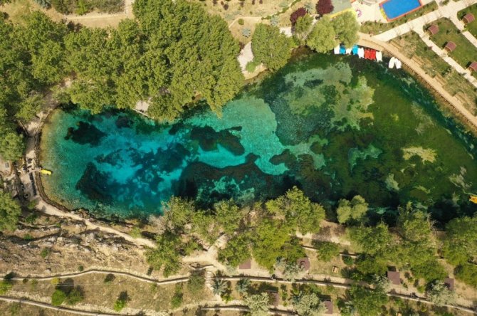 Sivas'ın Gürün ilçesinde berrak suyuyla Anadolu'nun nazar boncuğu olarak bilinen "Gökpınar Gölü" çevresinde yapılan peyzaj ve ıslah çalışmaları sona...