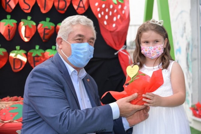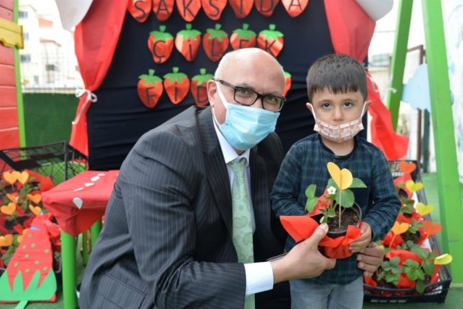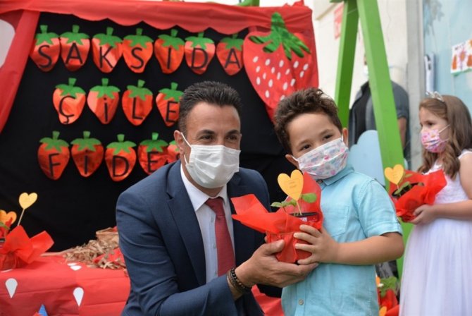 Anaokulu öğrencilerine 3 bin saksıda çilek fidesi dağıtıldı