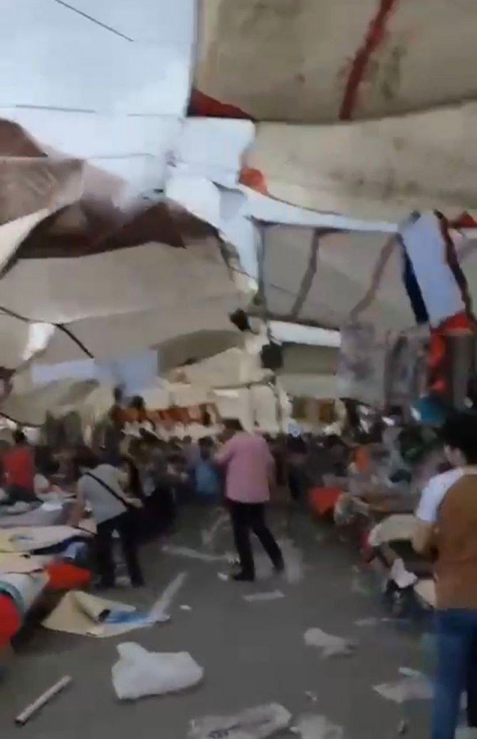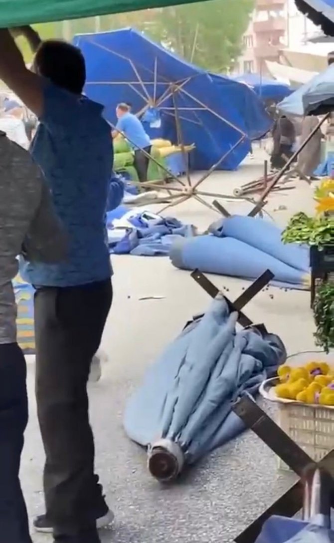 Sakarya'da aniden etkisini gösteren yağış hayatı olumsuz etkiledi. Aniden bastıran yağışa bazı vatandaşlar hazırlıksız yakalandı. Yaklaşık yarım saat süren yağış öncesinde oluşan fırtına ise Pazar yerinde vatandaşlara ve esnafa zor anlar yaşattı. Rüzgarın etkisiyle uçuşan brandaların yıkılmaması için uğraş veren esnafın zorlu mücadelesi cep telefonu kameralarına yansıdı.