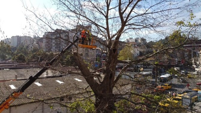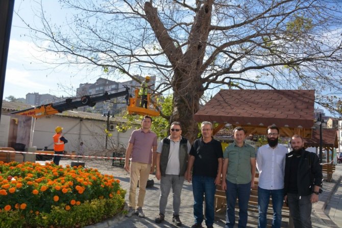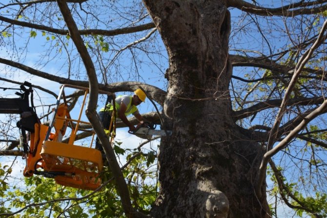 Temizlik İşleri Müdürü Sezgin Okumuş, Pazar yerindeki 563 yıllık 2 Anıt ağaçta kuruma tespit ettiklerini belirterek, Park ve Bahçeler Birimi ekiplerinin ilgili kurumlardan alınan izinler doğrultusunda bakım çalışması yaptığını söyledi.