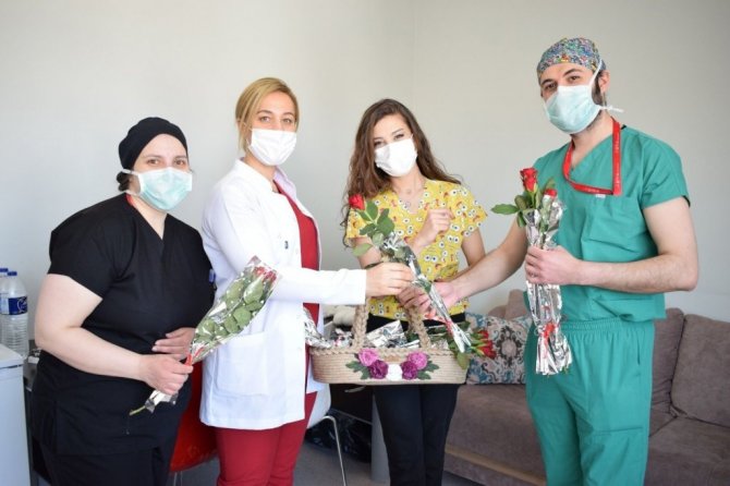 Hastanede görev yapan hemşireler de kendilerini bu özel günde unutmayan hastane yönetimine teşekkür etti.