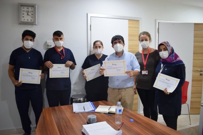 Gaziantep Özel ANKA Hastanesi'nde koronavirüs salgınıyla mücadele kapsamında gece gündüz demeden, insanların sağlığı için kendi hayatlarını hiçe sayarak fedakarca görev yapan yardımcı sağlık çalışanlarına teşekkür belgesi verildi. Salgınla mücadelede ön saflarda yer alan sağlık çalışanlarına teşekkür belgelerini veren ANKA Hastanesi Genel Müdürü Dr. Cengiz Bayram, "Aileleriyle geçirecekleri vakitten fedakarlık yaparak, sahada gösterdikleri emek ve gayretli çalışmalarından dolayı ekibe ve ekip sorumlarına yürekten teşekkür ediyorum. Covid-19 sürecinde sağlık çalışanlarımızın sorumlulukları çok büyük. Onların salgınla mücadelede özverili çalışmalarına bizler de destek olmak için rehavete kapılmadan hareket etmeliyiz. Böylece hem kendiniz ve sevdiklerinizin sağlığını korumuş hem de sağlık çalışanlarımıza yardımcı olmuş oluruz" dedi.