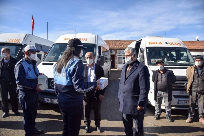 Pandemi döneminde merkez ve çevre ilçelerde hijyen desteğini artırarak devam ettiren Ankara Zabıtası son olarak Güdül ve Bala'da ulaşım, pazarcı ve ilçe esnafı ile vatandaşlara maske ve dezenfektan dağıttı.