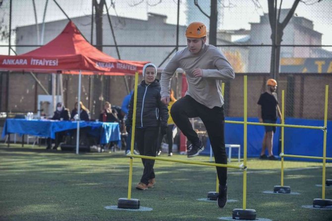 Adaylar, Ankara İtfaiyesinde kurulan parkurda yarışıyor