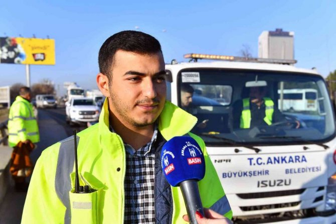 hızlı şekilde yanlarında olmaya çalıştıklarını belirten çekici şoförü Mustafa Günday, "Ankara Büyükşehir Belediyesi olarak başlattığımız ücretsiz çekici hizmetimiz hafta içi 07.00-09.30 saatleri arasında devam ediyor" diye konuştu.