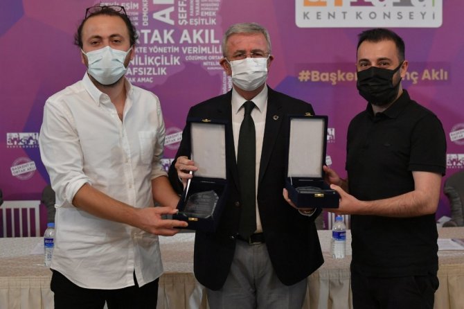 Ankara Büyükşehir Belediyesinin pandemi döneminde büyük bir özveriyle çalışarak hayatını kaybeden sağlık çalışanlarının hatıralarını yaşatmak için düzenlediği "Sağlık Çalışanlarına Şükran ve Anma Mekanı Proje Yarışması" sonuçlandı. Yarışmayı kazanan projenin sahiplerine ödüllerini veren Başkan Mansur Yavaş verdi.