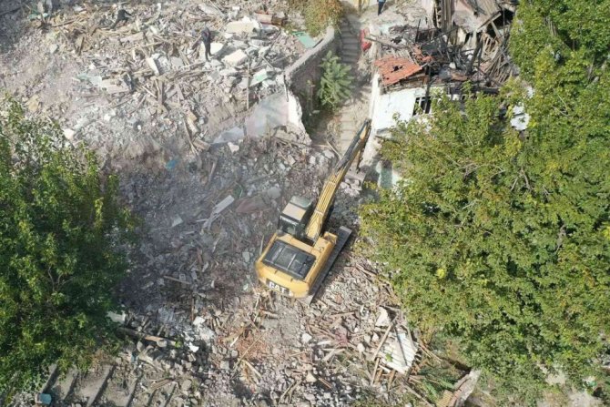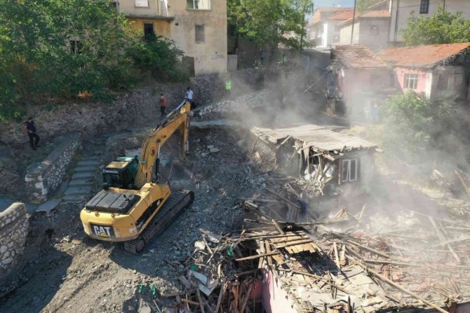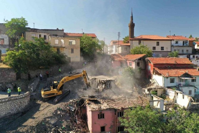 Ankara Kalesi'nde tarihi dokuya uygun olarak dönüşüm çalışmaları tüm hızıyla devam ediyor. Dönüşüm çalışması kapsamında bölgedeki metruk yapılar bir bir yıkılıyor.