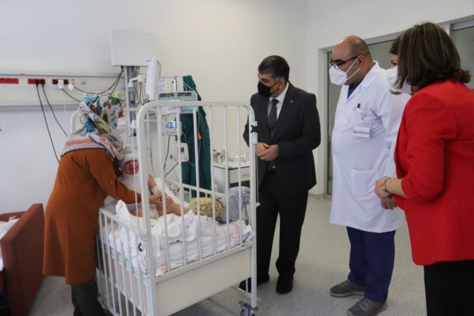 İl Sağlık Müdürü Prof. Dr. Mehmet Gülüm ve Başhekim Op. Dr. Aziz Ahmet Surel, çocuklar ile yakında ilgilenirken isteklerini dinledi. Gülüm ve Surel'in yakın ilgisinden hem çocuklar hem de aileleri çok mutlu oldu.