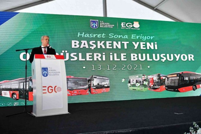 Seçim sürecinden önce de seçimlerin ardından şeffaflığa ve vatandaşların sağlığına öncelik gösterecek bir belediye başkanı olma sözü verdiklerini ve 2013 yılından beri belediye bünyesine yeni otobüs alınmadığını söyleyen Ankara Büyükşehir Belediye Başkanı Mansur Yavaş, "2010 yılında nüfusumuz 4 milyon 460 binken, Ankara'da 2 bin 37 otobüs hizmet veriyordu. 2020 yılında ise nüfusu 5 milyon 663 bin olan Ankara'nın otobüs sayısı bin 547'ye geriledi. 2013 yılından günümüze kadar Ankara nüfusu yüzde 12 artarken, EGO Genel Müdürlüğü bünyesindeki faal araç sayısı yüzde 21 düşmüştü. Bu ters orantı, sadece rakamların değil aynı zamanda bir yönetim anlayışının da tersliğini ortaya koyuyordu. Daha da vahimi, filomuzun yaş ortalaması 12'ydi. İşte bu durum bize göreve gelir gelmez yeni sorumluluklar yüklemişti. Hemen harekete geçip görüşmelerimizi ve hazırlıklarımızı tamamladık. Süreç devam ederken nasıl zorluklarla karşılaştığımızı tüm kamuoyu takip etti. Ancak nihayetinde buradayız ve Ankaralı hemşerilerimizle yeni otobüslerimizi buluşturacağımız için huzurluyuz" ifadelerini kullandı.