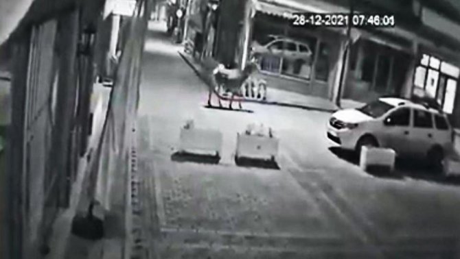 Nallıhan'da aç kalan geyik sabah 7.00 sıralarında şehir merkezine kadar indi. Bir iş yerinin kamerasına takılan geyik biraz oyalandıktan sonra alanı terk etti. Şehir merkezinde geyik gören vatandaşlar şok oldu.