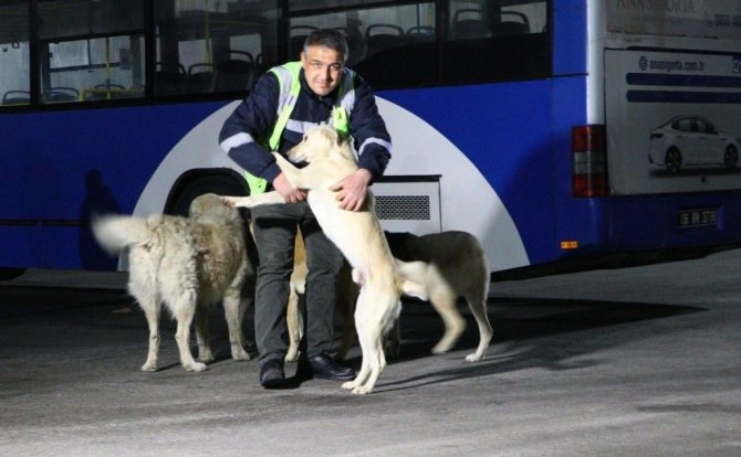 Ankara Büyükşehir Belediyesine bağlı EGO otobüs şoförünün köpekle yaşadığı eğlenceli anlar bir başka işçi tarafından kameraya kaydedildi. O anlara ilişkin şoför Yasef Demir, "Her zaman köpekler ben göreve giderken peşimden koşar" dedi.