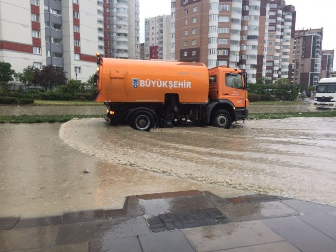 Başkent'te şiddetini artıran yağmur yağışı sonrası yollarda su birikintisi oluştu.