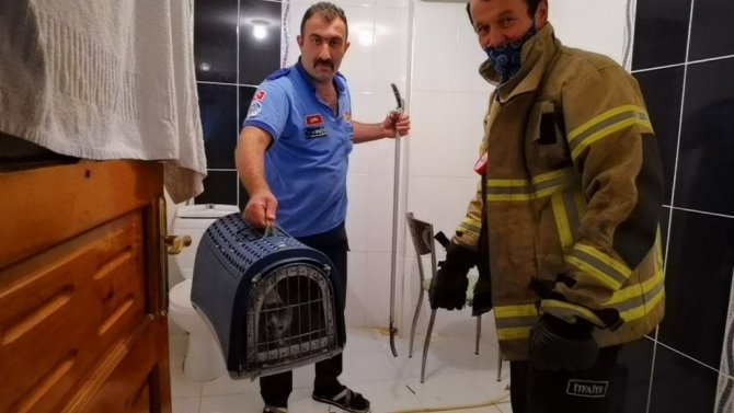 Olay yerine gelen İtfaiye ekipleri, yoğun uğraşlar sonucu yavru kediyi kurtardılar.