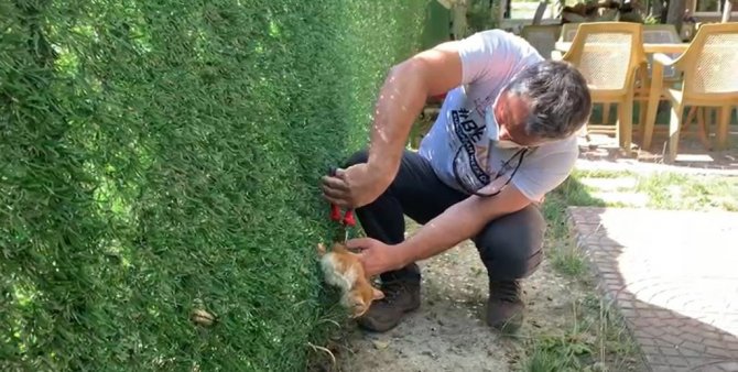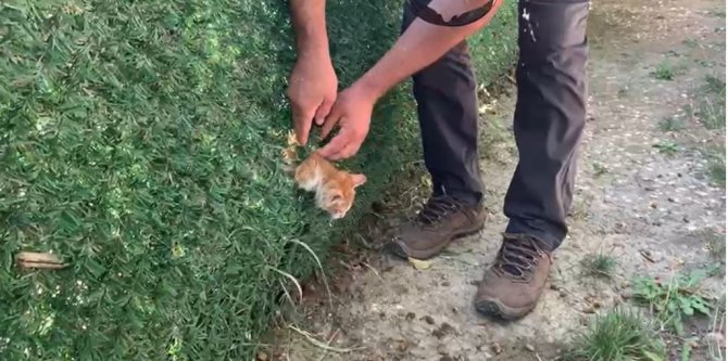 Yavru kediyi kurtaran dağcı Akif Söyler, "Geldiğimizde burada kedi sıkışıp kalmıştı. Bağırıyordu ve annesi de yardım bekliyordu. Pense ile teli kestik ve genişlettik. Yavru kediyi kurtardık buradan. Tekrar buradan girerse diye geniş bırakıyorum burayı. Kedilerimiz bir daha burada kalmasın" dedi.