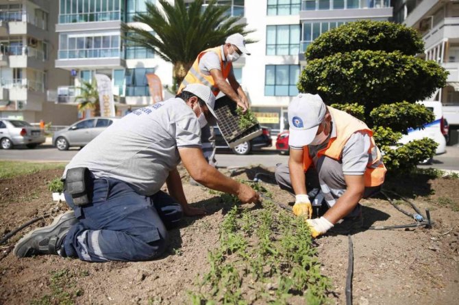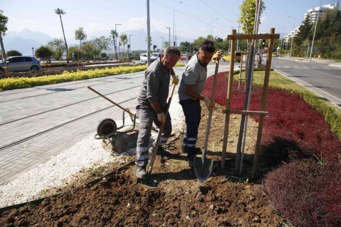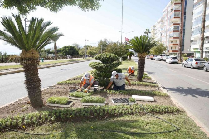 Antalya Büyükşehir Belediyesi, kent merkezinin güzel görünmesi ve rengarenk olması için çiçek dikimi gerçekleştiriyor.