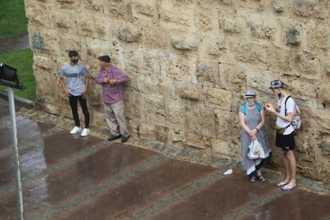 Turizm kenti Antalya'da haftalardır etkisini sürdüren sıcak ve nemli hava, öğleden sonra yerini sağanak yağışa bıraktı. Aralıklarla gök gürültülü devam eden yağış karşısında vatandaşlarda hazırlıksız yakalandı. Bir anda bastıran yağış karşısında, bazı vatandaşlar kaçarken bazıları da yağmur altında ıslanmayı tercih etti. Yağışın yarında gök gürültülü olarak devam etmesi öngörülüyor.