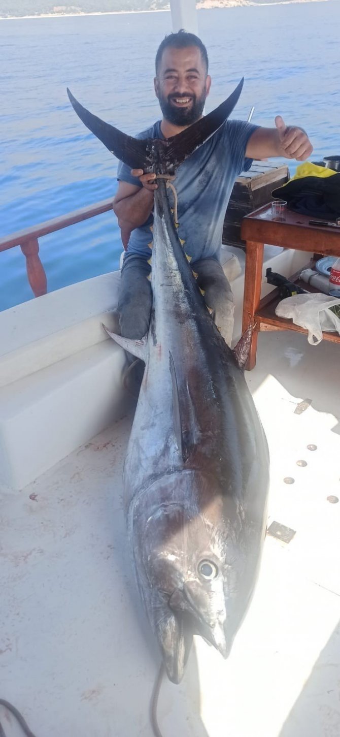 Antalya’da balıkçının oltasına 130 kiloluk orkinos takıldı