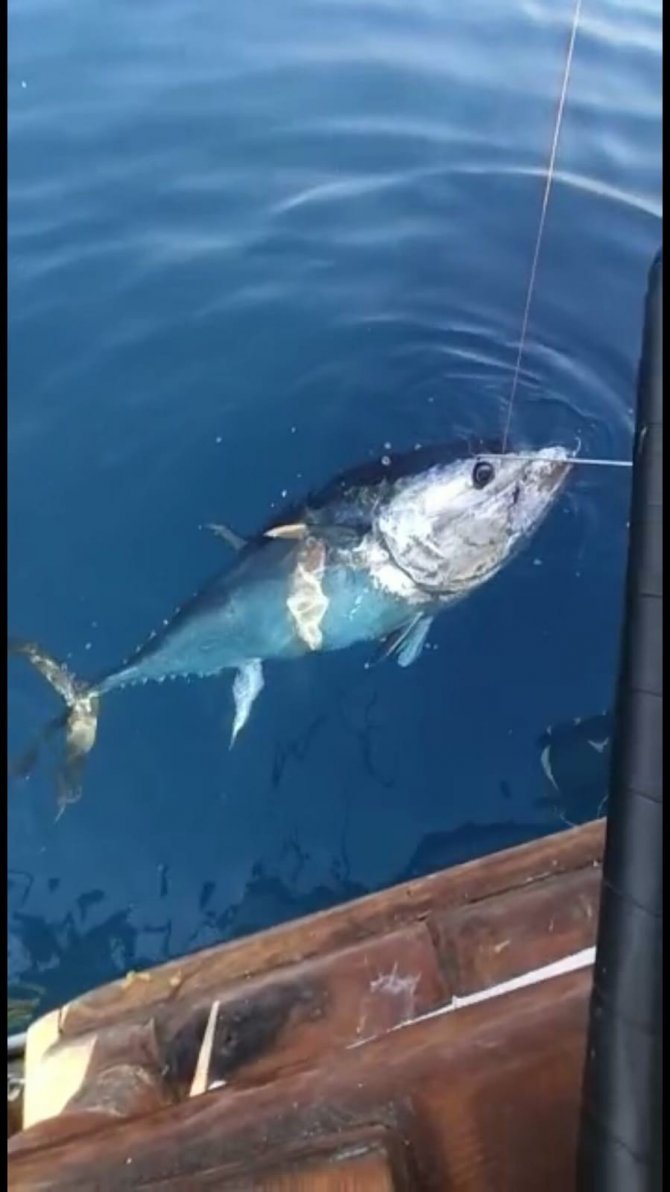 Antalya Balıkçı Barınağı'nda teknesi bulunan balıkçı Yusuf Kara(Kaptankara), büyük balık yakalamak için denize açıldı. Büyük Çaltıcak'ın açıklarına giden Kara'nın oltasına mavi yüzgeçli orkinos balığı takıldı. 80 metre derinlikte oltaya takılan balık Kara'nın teknesini bir süre sürükledi. Yusuf Kara, 3.5 saatlik uğraşın ardından balığı su yüzüne çıkarmayı başardı. Kara'nın tekneye çıkardığı balığın yanına yatması renkli görüntüler oluşturdu.
