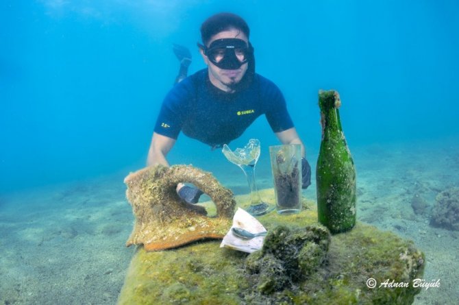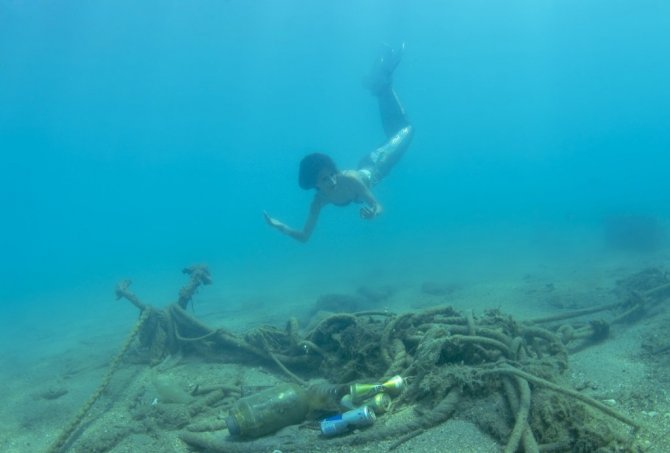 Antalya’da denizin altından çıkan çöpler, ’denizkızı’nı kızdırdı
