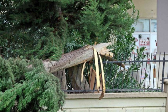 Mahalle sakinlerinden Mustafa Çağlayan, "Bir uğultu sesine çıktık. Hortumdu ve 15-20 saniye sürdü. Ağaçları yıktı, bir araba altında kaldı. Çatılardan gün ısıları söktü" dedi.