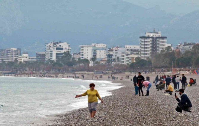 Hava sıcaklığının 14 derece, nem oranının yüzde 77, deniz suyu sıcaklığının ise 19 derece ölçüldüğü turizm kenti Antalya'da hafta sonunu iyi değerlendirmek isteyen vatandaşlar, Konyaaltı Sahili'nde zaman geçirdi. Kent merkezine yaklaşık 150 kilometre uzaklıktaki 1825 rakımlı Alacabel mevkiinde kar yağışı sebebiyle ekipler sabaha kadar karla mücadele ederken, sahilde öğle saatlerine kadar parçalı bulutlu bir havanın hakim olduğu kentte sahile gelen bazı vatandaşlar denize girdi, bazıları da bol bol fotoğraf çekindi. Havanın bir anda kapanmasıyla başlayan yağmursa hazırlıksız gelen vatandaşları şaşırttı. Eşyalarını toplayan vatandaşlar araçlarına doğru kaçarken, tedbirli gelenler ise şemsiyelerini açıp sahilde durmaya devam etti. Denize giren bir vatandaş, her sabah düzenli olarak denize girdiğini ve ocak ayında girmenin ayrı bir keyif olduğunu dile getirdi.