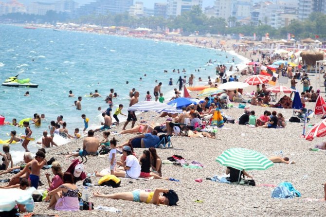 Turizm kenti Antalya'da termometreler 43'ü gösterirken, sıcak nedeniyle Konyaaltı Sahili'nde yoğunluk oluştu.