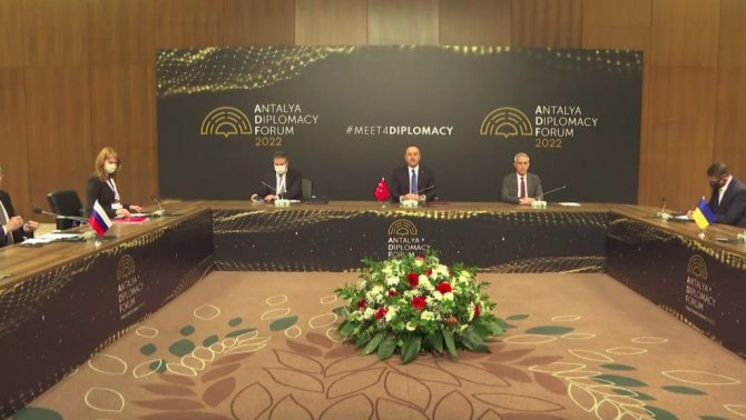 Dışişleri Bakanı Mevlüt Çavuşoğlu ile Rusya Dışişleri Bakanı Sergey Lavrov ve Ukrayna Dışişleri Bakanı Dmitri Kuleba'nın katılımıyla Antalya'da düzenlenen üçlü barış zirvesi başladı. Görüşmenin ardından taraflardan Kuleba'nın basın toplantısı yapması bekleniyor.